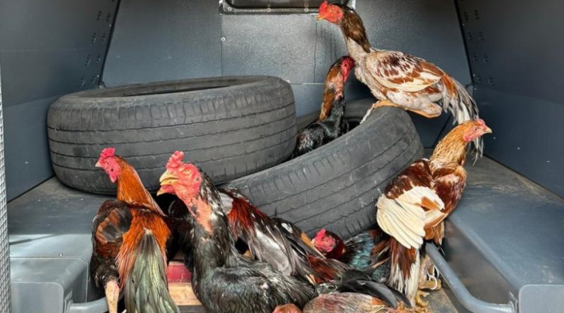 Ao final da operação, galos foram resgatadas e madeiras foram apreendidas.
